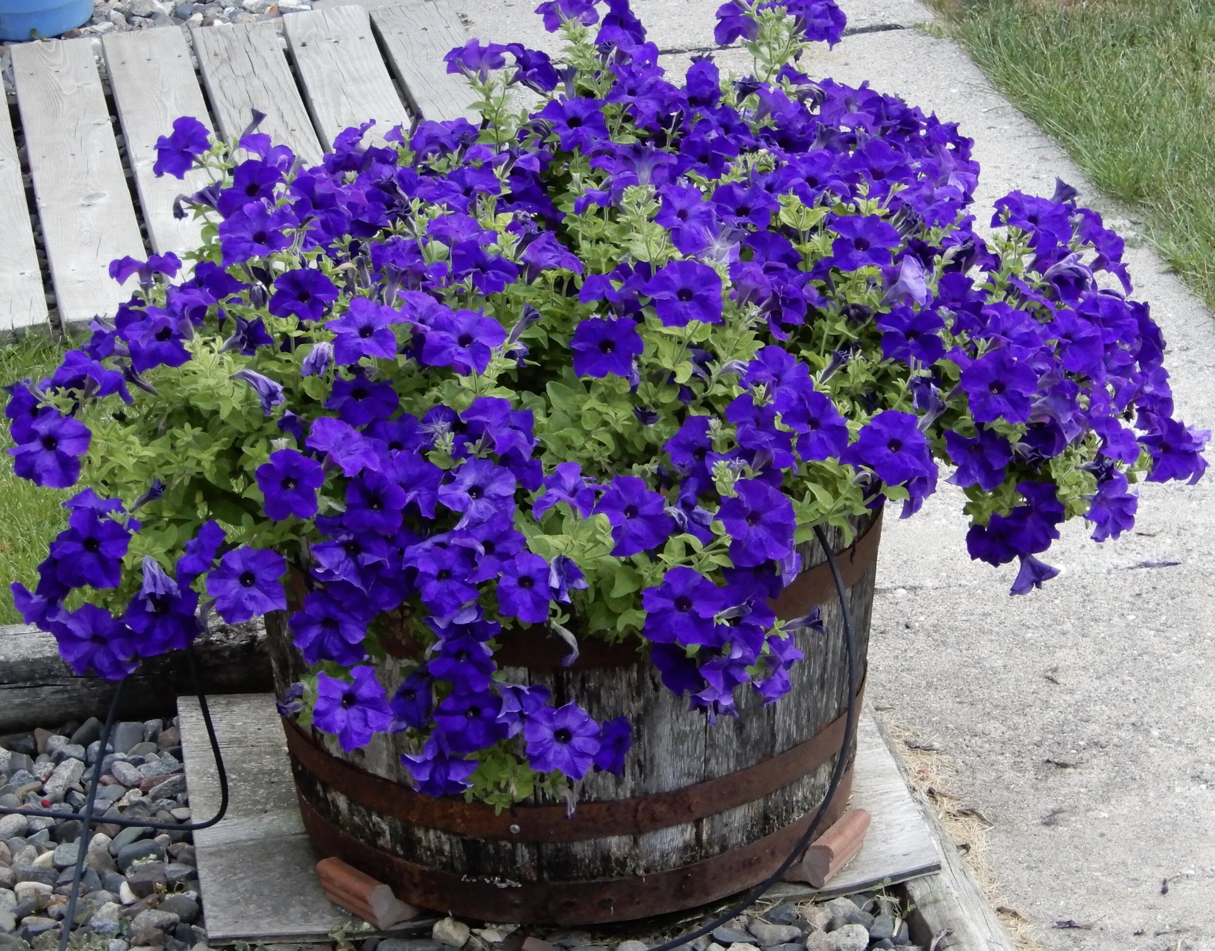 Yesterday I happen to look at my ornamental kale and say "my prayers have been answered"' or maybe they were Jen's prayers! It already has a nice bouquet shape and adding my deep purple petunia petals to its leaves looks very nice in my opinion. I'm thinking, "I'm on easy street", I can make this bouquet "carriable" - a new word!