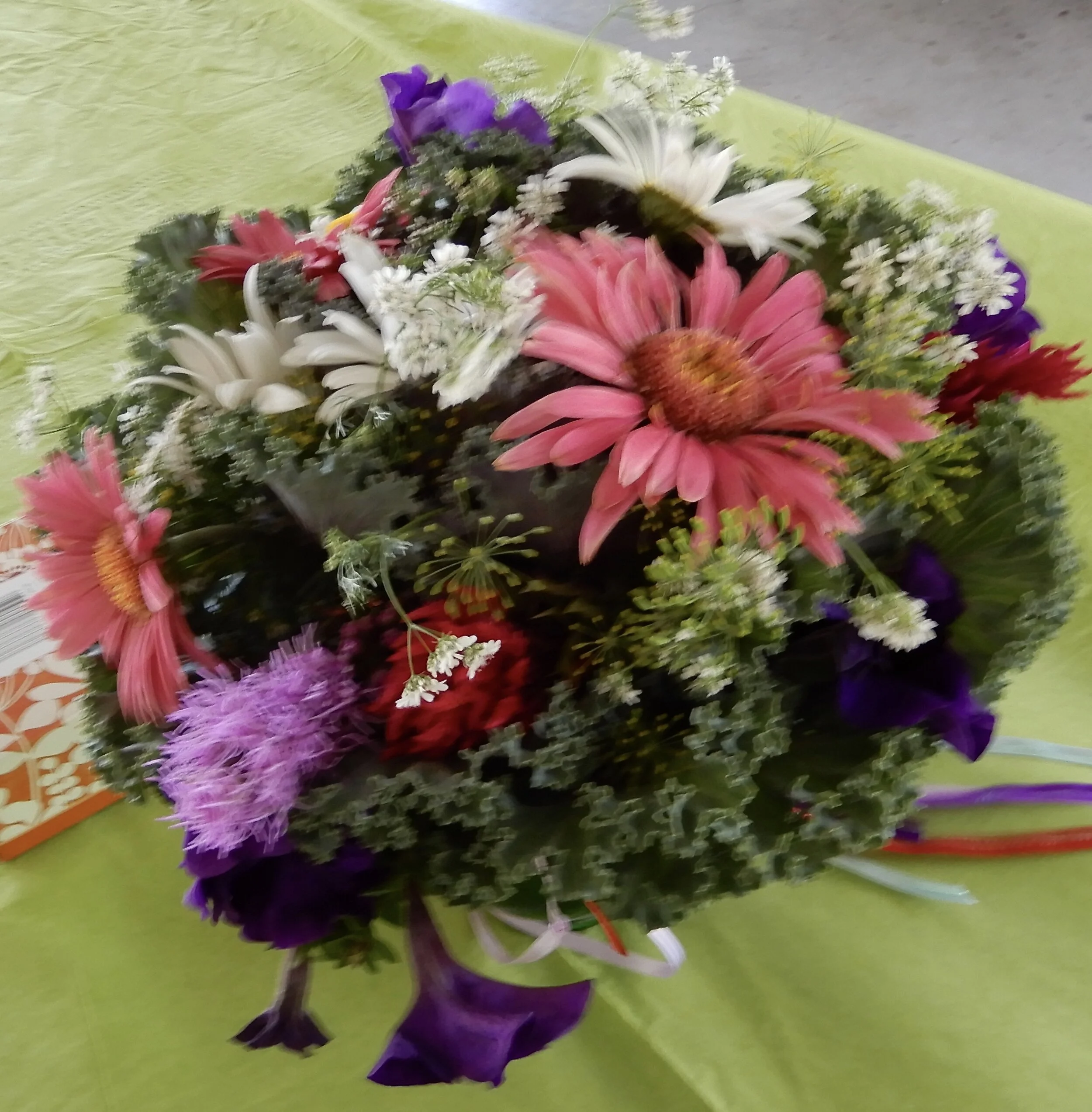 Finally, the universe takes pity on me! On another day, Jen mentions that her mother is an ace at flower arranging and always has a lovely garden. But, because her parents have quite a distance to travel she didn't ask her to bring any flowers.